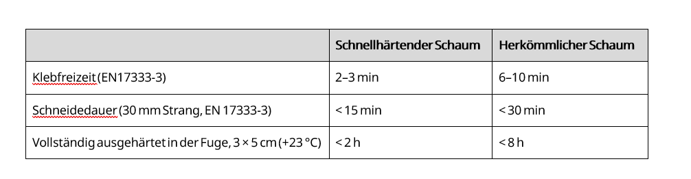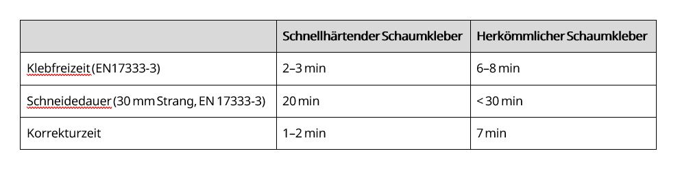 Bei all den Vorteilen schnellhärtender Produkte stellt sich die Frage, ob es Einschränkungen oder Besonderheiten bei der Anwendung gibt. Wenn beispielsweise (Schaum-)Klebstoffe schnell aushärten, ist in der Regel auch die Korrekturzeit kürzer. Das bedeutet, dass weniger Zeit für Anpassungen bleibt, insbesondere bei der Verklebung von Bauplatten.