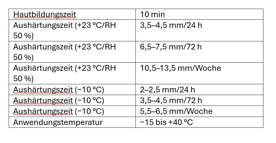 MS Hybridklebstoff für schnelle Aushärtung und kalte Klimabedingungen. Ein einkomponentiger, extrem schnell aushärtender Hybridklebstoff mit hervorragender Leistung, selbst bei niedrigen Temperaturen. Entwickelt für anspruchsvolle Anwendungen im Innen- und Außenbereich, bei denen eine besonders schnelle Aushärtung gefordert ist. Er bleibt dauerhaft elastisch und sorgt für eine belastbare Verbindung, ideal für die schnelle Verklebung von Materialien wie Holz, Beton, Metall und Glas. Er kann bei Temperaturen bis zu −15 °C verwendet werden. Außerdem ist er beständig gegen Witterungseinflüsse wie Niederschlag, extreme Temperaturen, Ozon, UV-Strahlung, Nachtkondensation, Regen und mehr. Ideal für die Montage von Komponenten in Fertigungslinien mit hohen Anforderungen an schnelle Verarbeitung und minimale Stillstandzeiten. Auch geeignet für die Verklebung von Leichtbaukonstruktionen in der Geräte-, Möbel- und HLK-Industrie. Seine leistungsstarken Eigenschaften machen ihn zur idealen Lösung für die Montage von Geräten und Komponenten in Kühl- und Tiefkühllagern.
