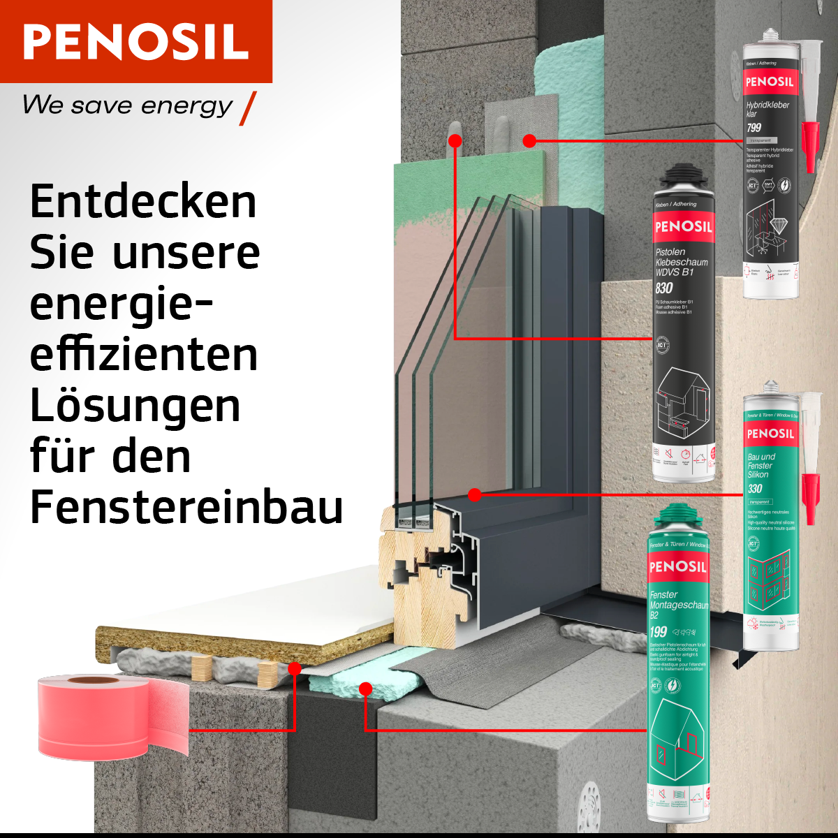 Gerade im Neubau und bei der energetischen Sanierung leisten Penosil-Produkte einen wichtigen Beitrag zur Reduzierung von Wärmebrücken und Energieverlusten an Fensteranschlüssen.