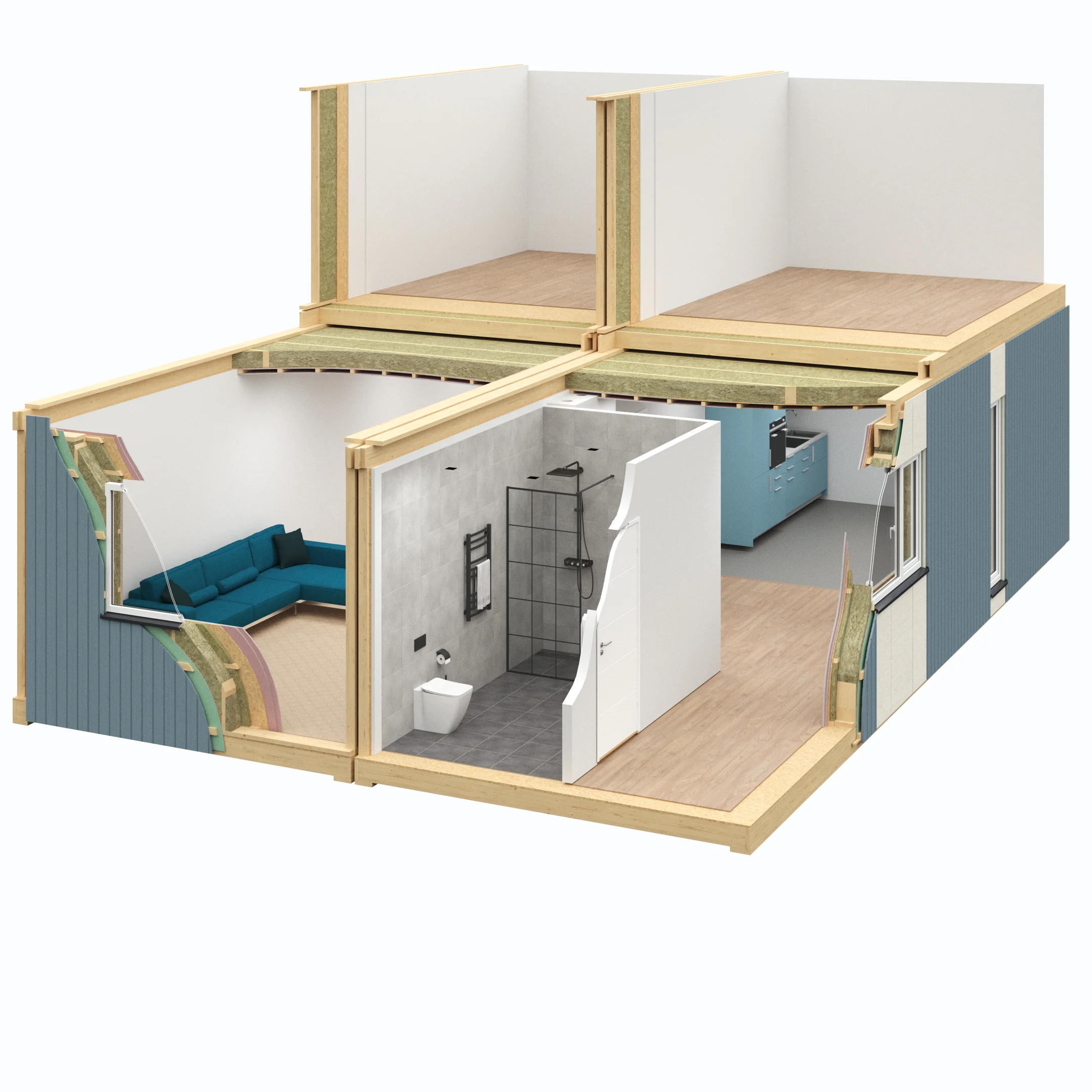 Darüber hinaus bieten wir spezialisierte Lösungen und Materialien für die Innenausbauarbeiten in Modulhäusern, die Verlegung von Bodenbelägen, Brandschutzarbeiten und das Verkleben von Platten an. Die Wolf Group bietet auch Fassadenplatten unter unserer eigenen Marke Tempsi an.