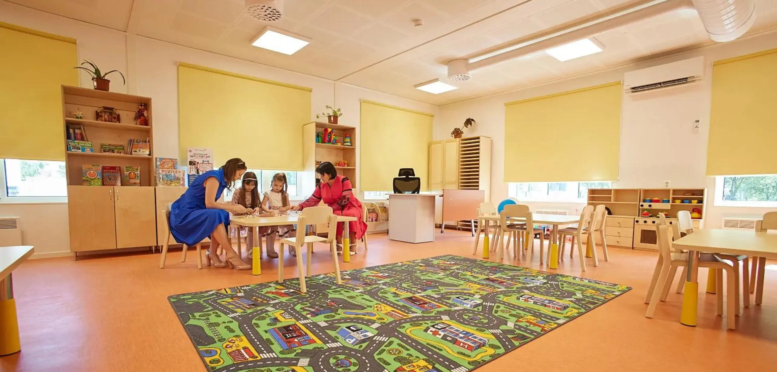 Esta guardería, con capacidad para 160 niños, se construyó en dos fases. La primera, de ingeniería, producción y montaje in situ, duró 170 días, mientras que la segunda se completó en 150 días.