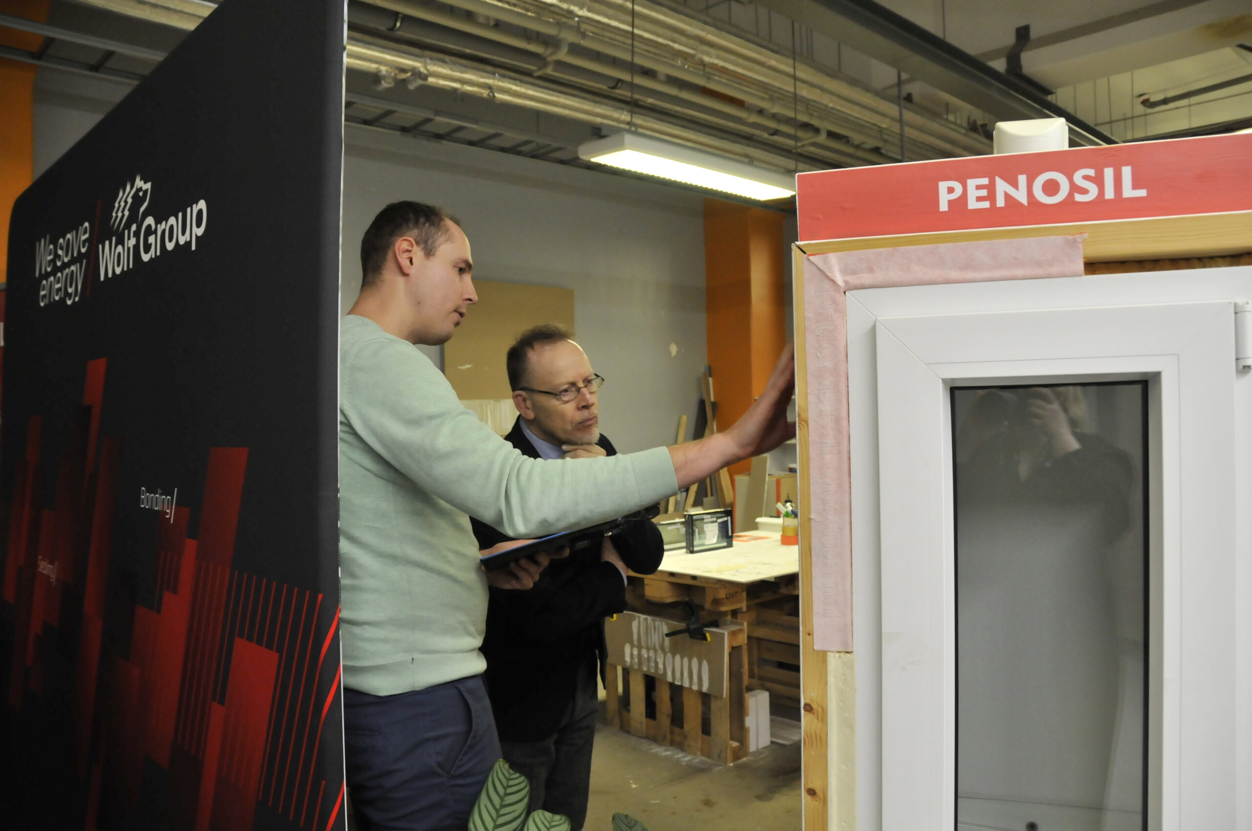 Durante la visita se presentó la sede de Wolf Group, la estructura del grupo y la red de exportación, y también se visitaron las instalaciones de producción, donde se fabrican espumas de poliuretano, sellantes, adhesivos y productos de tratamiento de superficies. También se pudo ver y probar el uso de la espuma en spray. Wolf Group fue pionero de esta innovación en Europa al ser el primero en lanzar una espuma proyectable aislante de un solo componente y bajo contenido en isocianatos. El lema de Wolf Group es We save energy (Ahorramos energía), por lo que prestamos mucha atención a la eficiencia energética y a las soluciones eficientes desde el punto de vista energético. Se utilizó un simulador de estanqueidad como ejemplo para que los invitados se hicieran una idea del papel que desempeña el aislamiento adecuado y su correcta instalación a la hora de eliminar las pérdidas de calor y las fugas de aire.