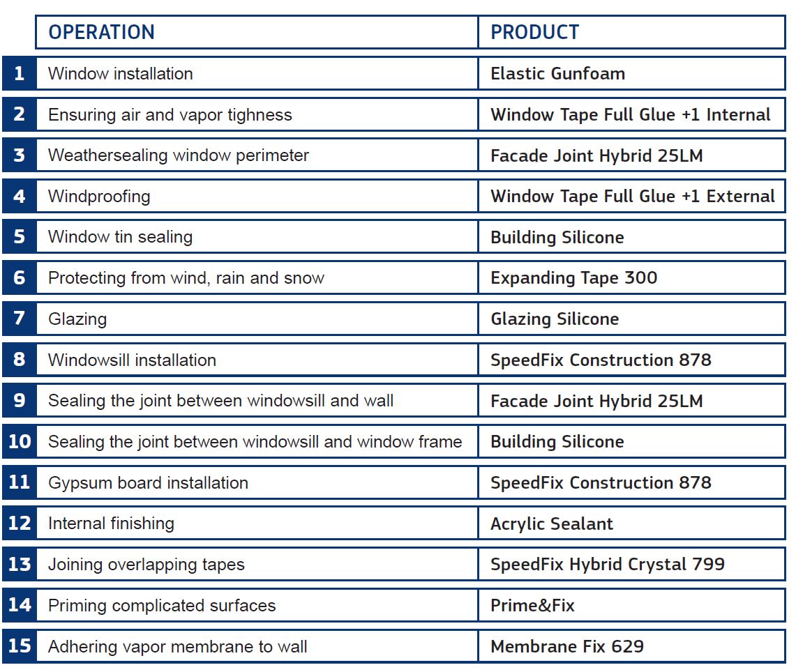 - Užtikrinkite sandarumą, kad sumažintumėte šilumos nuostolius dėl oro nuotėkio. Teisingai panaudojus kokybiškas montavimo putas, turėtų pakakti, kad jungtis būtų sandari. Siekiant užtikrinti sandarumą pastato eksploatavimo metu, reikėtų papildomai naudoti specialias juostas, membranas ar mastikas.