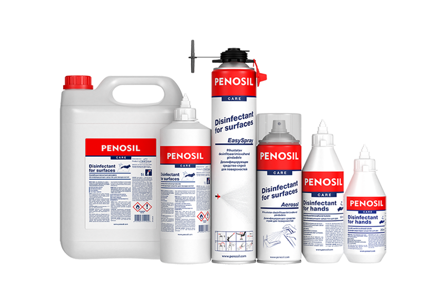 PENOSIL Care dezinfekavimo aerozolinė priemonė paviršiams buvo sukurta remiantis patogiu aerozoliniu balionėliu, skirtu namų ūkiams ir mažesniems biurams. Be produktų, esančių aerozolinėje balionėlyje, produktų asortimente yra dviejų dydžių PENOSIL Care Deinfectant rankoms ir PENOSIL Care Deinfectant paviršiams, kurie rekomenduojami tepti su valymo šluoste.