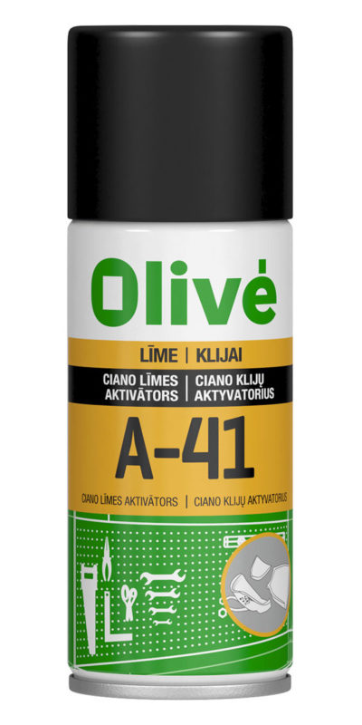 Olivé A-41 ciano aktyvatorius yra skaidrus skystis, purškiamas kai reikia padidinti cianakrilato klijų stingimo greitį.