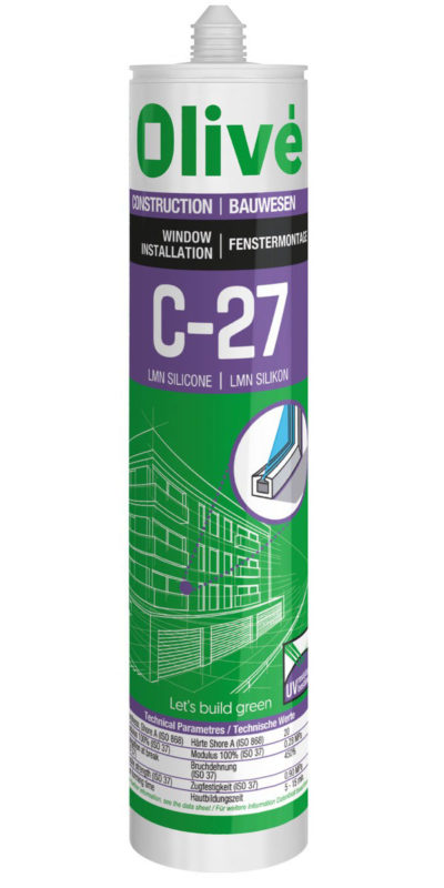 Olivé C-27 yra vieno komponento, žemo modulio, neutralus silikonas, kuris reaguodamas su aplinkoje esančia drėgme ir sukuria itin atsparią lanksčią jungtį.