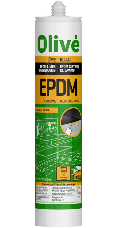 Olivé EPDM yra vienkomponenčiai elastingi klijai, paremti nauja hibridine polimero technologija ir specialiai sukurti tam, kad būtų galima priklijuoti EPDM membranas.