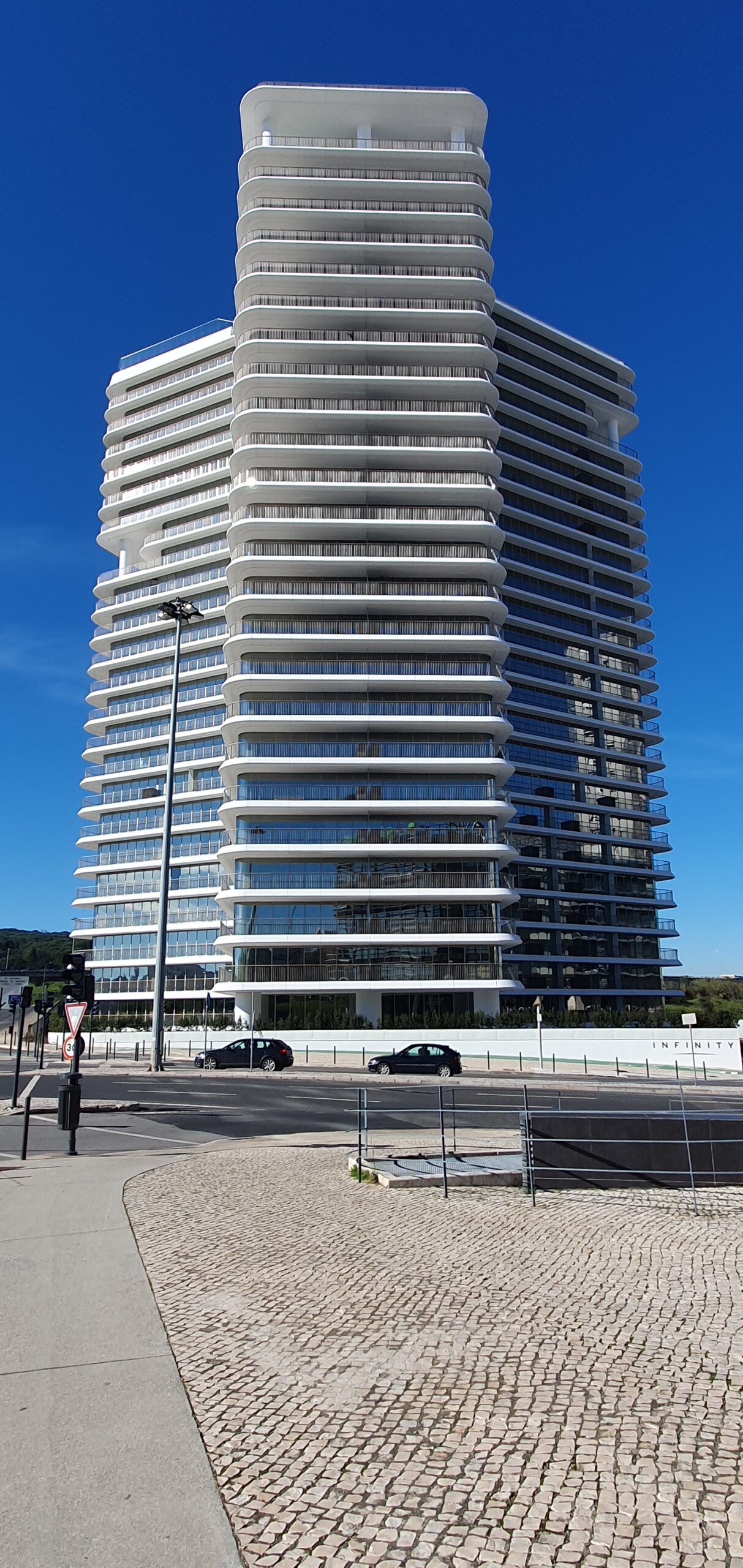 This exclusive building in Lisbon has 26 floors and 195 apartments, as well as indoor and outdoor pools, spacious balconies, a gym and private parking. It sweeping views over the Tagus River, the surrounding city and almost 1000 hectares of forest.